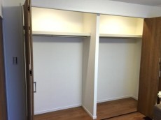 こちらのお部屋には大型のクローゼットが設置されています♪奥行きもしっかりで収納力バツグン☆長いハンガーパイプにはたくさんの洋服を掛けられそうです(´∀`*)