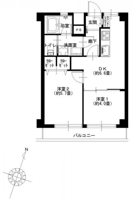 もう1部屋の洋室は約5.7帖。こちらも同じく窓は南向きの明るいお部屋です。