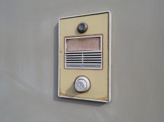 ドアの扉にはレトロな雰囲気のインターホンがついていますが、ちゃんとTVモニターがついているので中から来訪者の顔もバッチリ確認できます。ボタンの「♪♪」マークがかわいらしいですね。