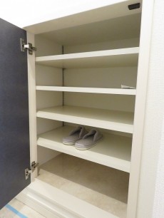 ニッチの下側にシューズBOX。靴がたくさんあって入りきらない方はお部屋で管理したり、廊下にシューズラックを置いたりして保管するのが よさそうです。