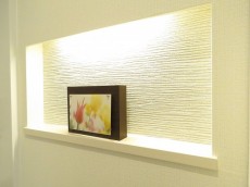 玄関横の壁面にはニッチがつくられており、ちょっとした小物などを飾っておけるようになっています。
