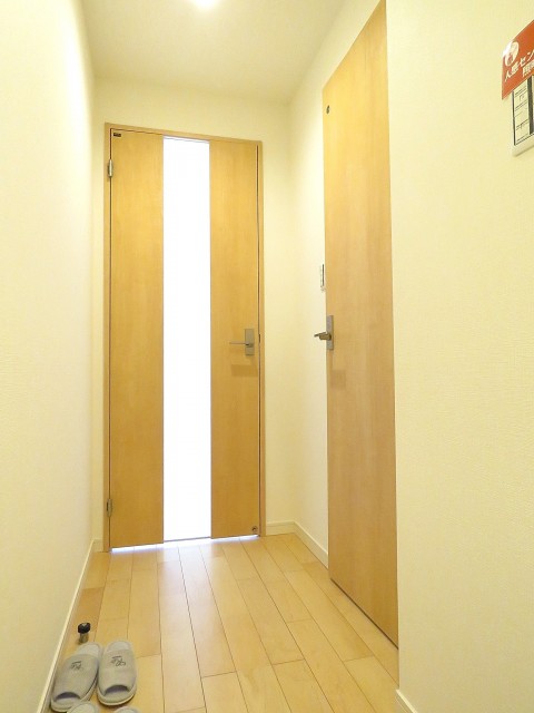 右側の扉は洗面室、正面の扉はダイニングキッチンです。