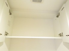 ペーパーのストックや掃除用具の保管に便利な収納棚も設置されています。