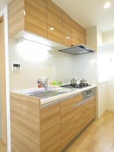 窓際にはキッチン家電やキッチングッズを置くのに便利なカウンター、コンロは3口、水栓は浄水機能付きとお料理スムーズに進められそうな雰囲気です。