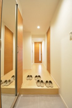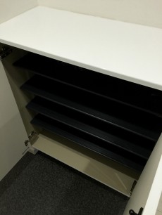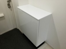 玄関入って右手にはトールサイズのシューズボックス。棚板は動かせるので、