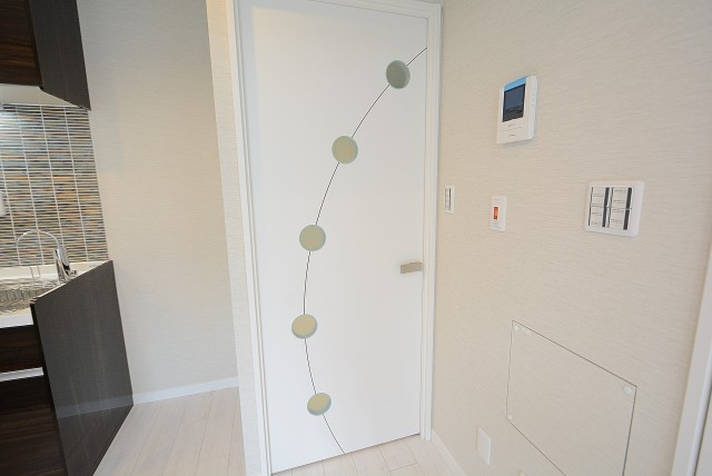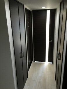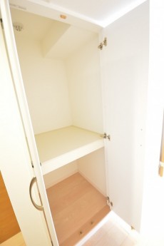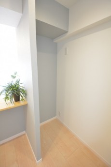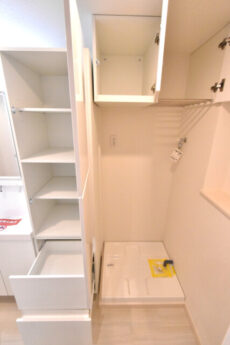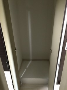 左手が、洗濯機置場。右手が収納です。洗濯機置場に扉が付いていると生活感を隠せるのでGood♪♪右手の収納には棚等は設置されていませんが、その分長い物の収納には最適です♪♪