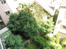 バルコニーは南東向き。眼下にはお庭の豊かな緑が見えます。周囲に高い建物