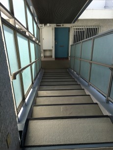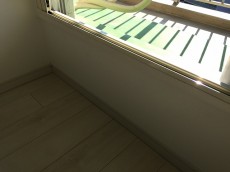 最後にバルコニーへ出てみます。リビングダイニングと南側の洋室から出ることができます。どちらのお部屋からも段差をまたぐ形になります。