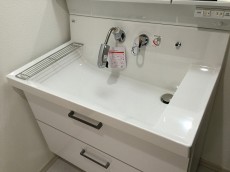 まずは、白を基調にした大きめサイズの洗面台です。新規交換済みでピッカピカ。+゚ *。。+゚ *。