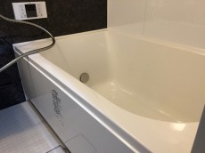 バスルームは、ブラックの大理石風パネル☆ゆっくり大きなバスタブにつかって疲れを癒せそうです♪♪
