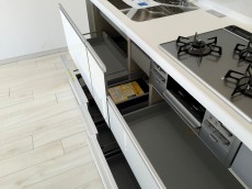 ています。シンクの水栓は浄水器一体型、ビルトインタイプの食器洗浄機付。