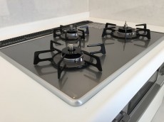 3つ口コンロはお料理好きの方には嬉しいですね♪シンク&ワークトップは大きめで使い勝手◎