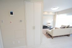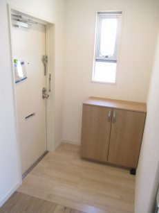 玄関ホールには、大き目の収納がありました。日用品や掃除機の収納スペースとしても。