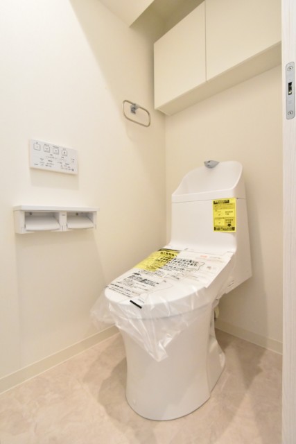 お隣は、嬉しいウォシュレット付のトイレです。収納はありませんので、棚を設置しても良いですね。