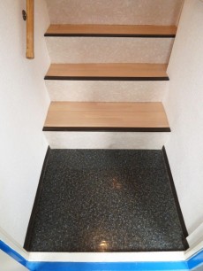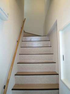 玄関を開けると、おお、階段が続いています。手すりも付いている親切設計。