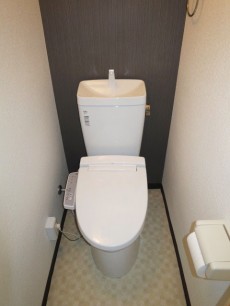 トイレはもちろんウォシュレット付。床にはバブル模様?のフロアカーペットが