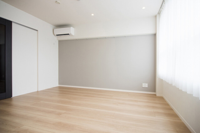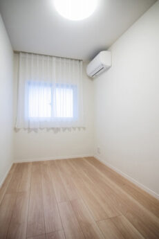 リビングダイニングに隣接して約4.5帖の洋室1があります。こちらにはコンパクトなクローゼットが設置されています。室内に凹凸がほぼないので実際よりも広く見えます。