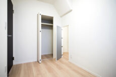 こちらは廊下から出入りできる約4.0帖の洋室2です。奥行きのあるクローゼットと物入があります。物入には使う頻度の低いものを入れておくのに重宝する空間となっております!
