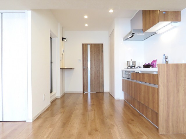 キッチンはフローリングに馴染む木目柄。