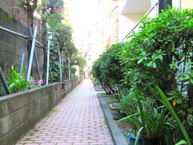 門扉を入ると脇に植栽がある通路になっており、お部屋毎にいくつかのエントランスに分かれています。