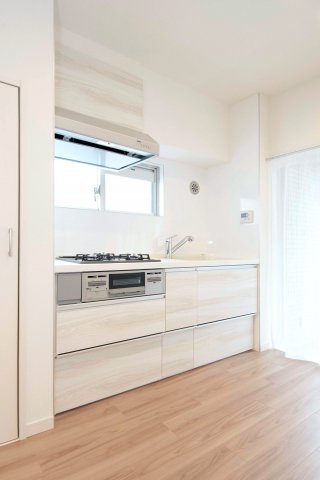 キッチンは3口のグリルつきガスコンロ、浄水機能付きの水栓、食器洗浄機が付いています!!食器洗浄機が付いているのは嬉しいですね(*^艸^)