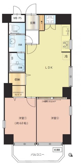 洋室2部屋がバルコニーに面したお部屋です。
