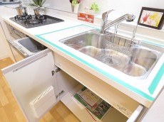 キッチンは浄水機能付き水栓、お料理がはかどる3口コンロ、食洗機付き。お料理好きな奥様や忙しい奥様にうれしい設備が揃っています。