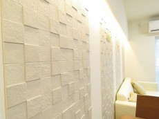 壁面には調湿・消臭効果のあるエコカラットがオシャレに貼られています。