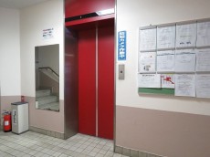 エントランスホールを進んだ先にエレベーター。向かい側は階段です。