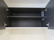 大型の吊戸棚は隠しておきたいトイレ周りの収納にも大活躍です。