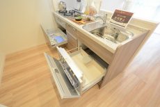 食洗機、浄水器一体型水栓、ガラストップコンロ、大容量のスライド式収納・・・充実の機能でお料理タイムも快適です。