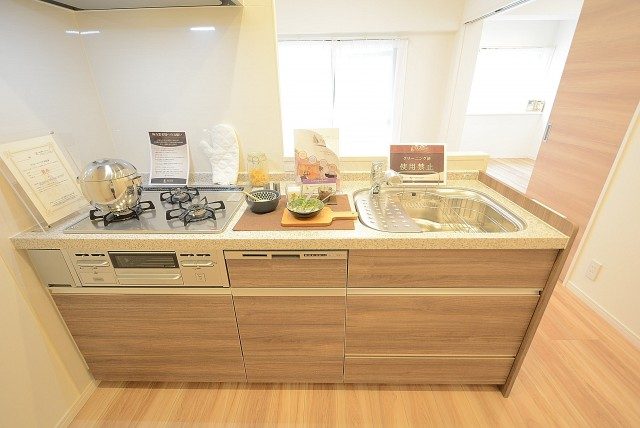 キッチンは浄水機能付き水栓、3口ガスコンロとスペック◎。