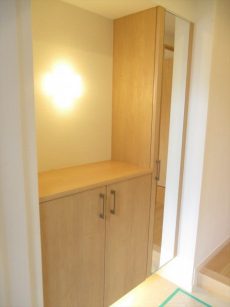 玄関を入るとすぐに、シューズボックスが造作設置されています。