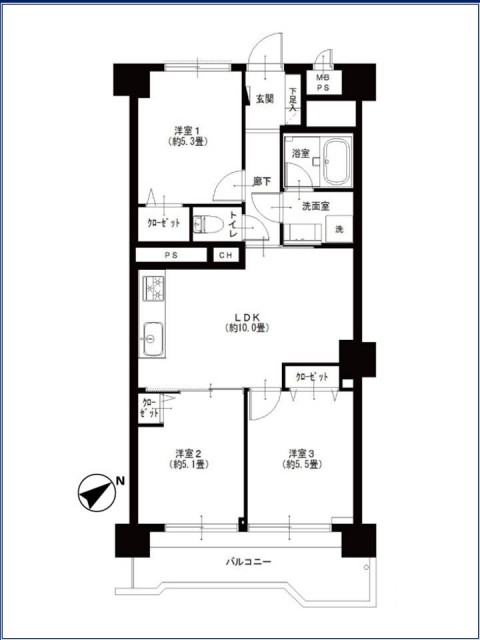 ここで間取りのご紹介。80.30㎡、3LDKです。南東向き、日当たり良好!