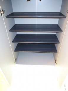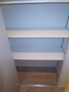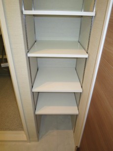 バスルーム入り口横にはリネン庫が設けられていました。棚板は調節可能