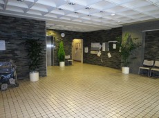 エントランスホールはタイル貼りの贅沢な雰囲気。所々に椅子が置いてあります。