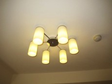 天井も照明まわりのアクセントクロスがお洒落ですね☆