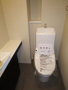 トイレはもちろんウォシュレット付。 床の素材はキッチン、洗面室と同じものが使用