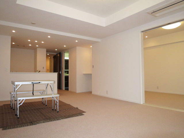 リビングダイニングのとなり、約6.9帖の洋室。引き戸を開放すれば、約26帖もの