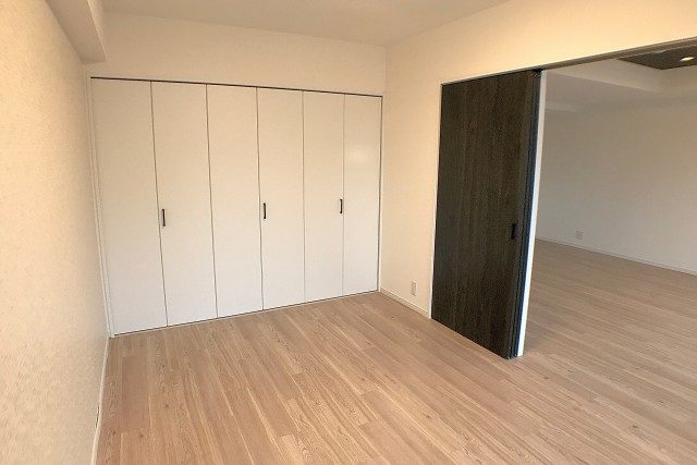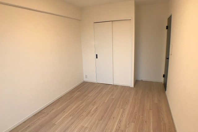 玄関入って突き当たりの洋室(約6.5帖)。ウォークインクローゼットが設置されて
