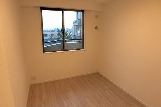 玄関入ってすぐ右の洋室(約4.5帖)。若干コンパクトなつくりながら、しっかりと