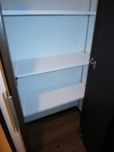 廊下にも物入れが設けてありました。棚板が動かせるつくりなので、季節はずれの