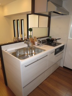 西向きの窓があるシステムキッチン。時間帯によっては、自然光の中でお料理
