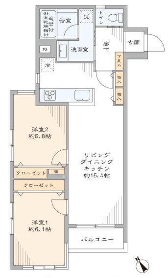 LDKは約15.4帖。家具の配置がしやすい縦長空間です。