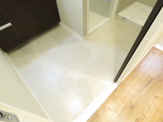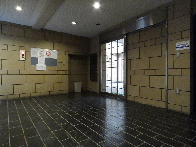 エントランス内部は黒タイルのフロアで落ち着いた雰囲気。