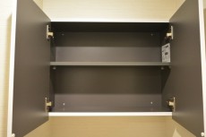棚が付いているので、トイレットペーパー等の消耗品や掃除用品はこちらに収納することが出来ますよ