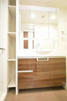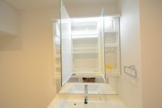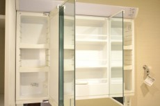 三面鏡タイプの洗面化粧台はミラーを開けると中は収納スペースになっています。