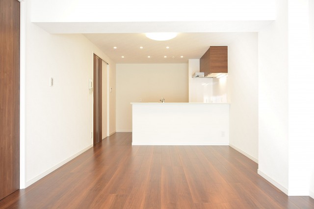 LDKは約15.9帖と広々。南向きの窓から陽ざしがサンサンと入る明るい空間です。
