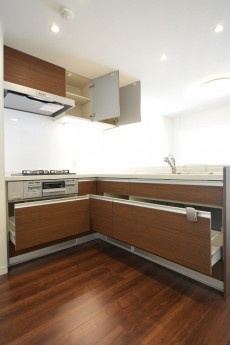 キッチンはL字型。作業スペースが広くお料理もしやすそうです。