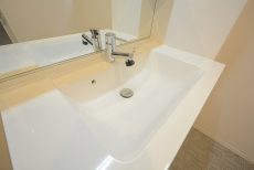 トイレのお隣は洗面室。洗面化粧台、洗濯機置場、バスルームがまとまっています。